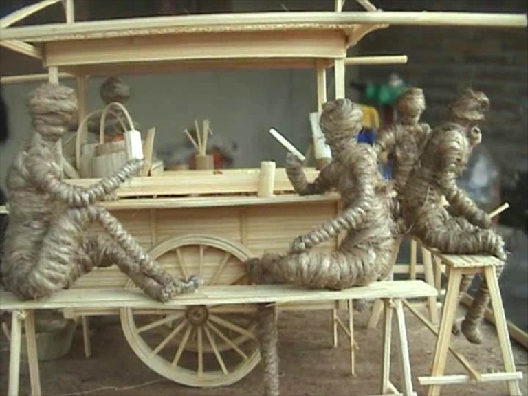 Dibanding menggunakan kayu, menurut Inung, pembuatan miniatur dari bambu ternyata lebih mudah dan sederhana. Pertama, bambu dibersihkan dan dipotong sesuai bentuk dan ukuran yang diinginkan. Potongan-potongan bambu inilah yang dirangkai menjadi miniatur dengan menggunakan lem. Agar terlihat lebih indah, biasanya dipadu dengan karung goni dan daun pisang kering. “Dibanding kayu, bahan bambu bisa lebih menampilkan detil miniatur yang ingin dibuat.